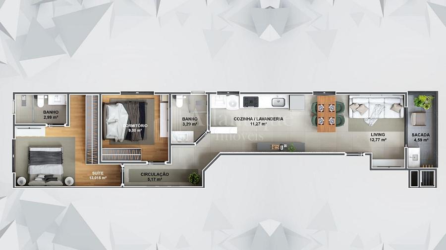2 dormitórios (1 suíte)