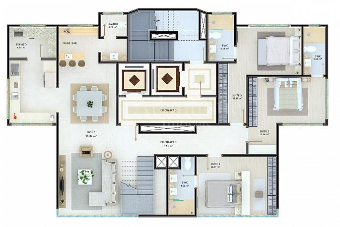 3 dormitórios (3 suítes)