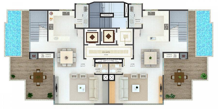- 2 duplex com 3 suítes, 3 vagas e terraço com piscina, churrasqueira e quiosque