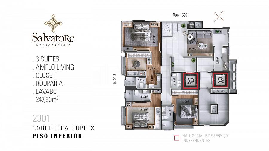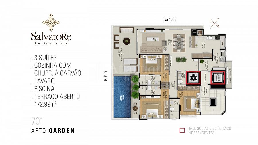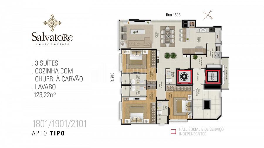 - Empreendimento de alto padrão localizado no coração da cidade, entre a Igreja Santa Inês e 3ª Avenida.