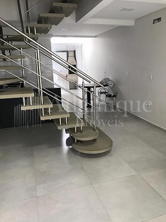 - Escada com acabamento e granito e inox.